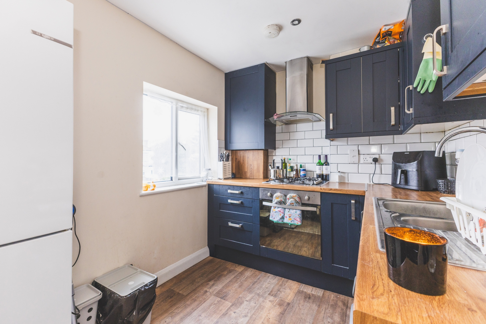 On entering the property, stairs lead you to the first-floor landing, which gives you access to all rooms. The open plan lounge/diner kitchen is located to the rear of the property, it is light and bright and offers generous living space. The kitchen is fitted with a range of base and eye level units with work surfaces. it benefits a fitted electric oven, hob and cooker hood, with spaces for further appliances. The bedroom is a fantastic size, featuring a bay window allowing in plenty of natural light. The room can comfortably a king size bed with plenty of space left for other free-standing furniture. The family bathroom has been refitted; it now compromises a white three-piece suite all set against stylish tiling. A window allows for plenty of light and ventilation.
