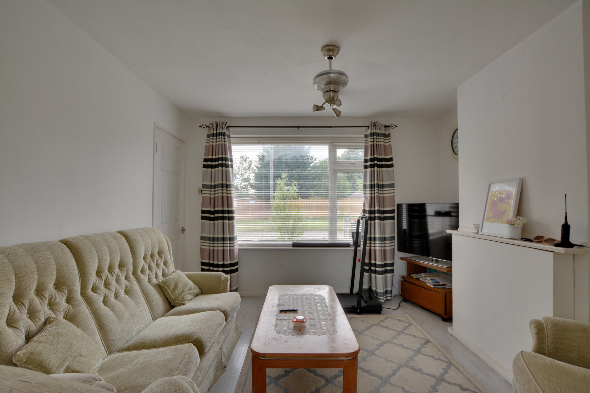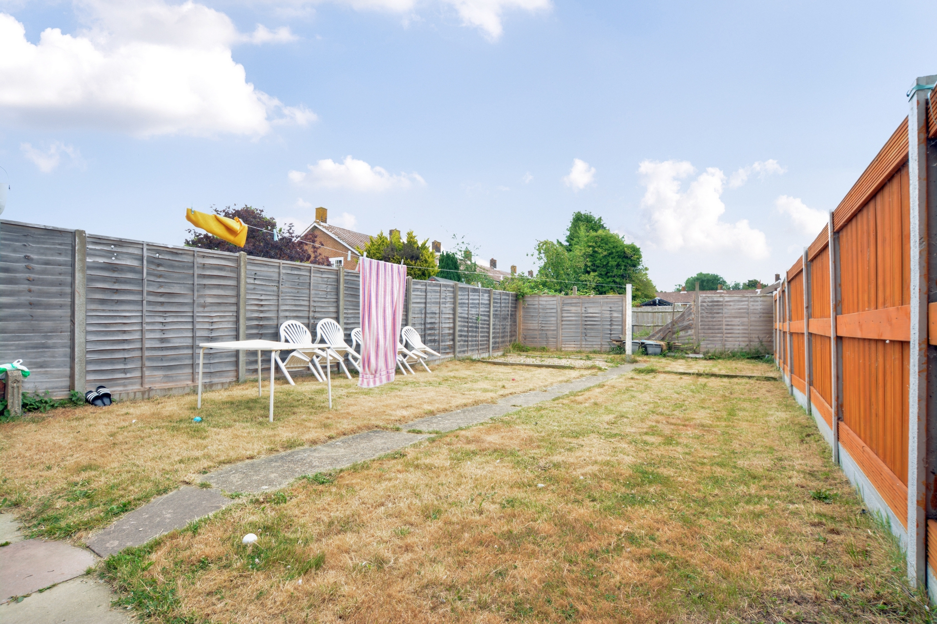 Outside the property to the front there is a lovely small lawned garden with a few plants and shrubs. The rear garden is mainly laid to lawn with a foot path down the middle and enclosed by fencing. There is a small patio area which offers entertaining space and can comfortably accommodate a garden furniture set.
