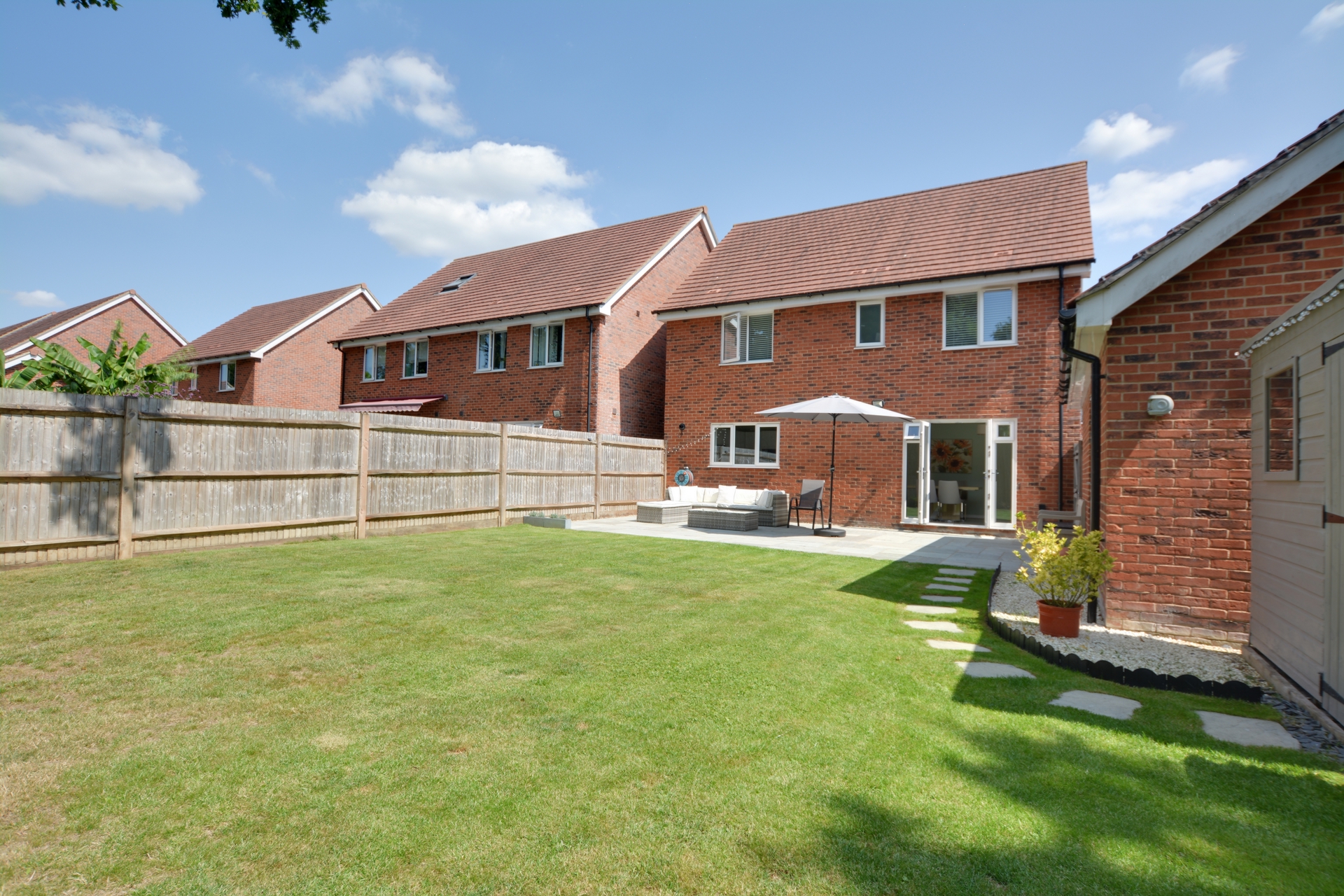 The very generous rear garden is mostly laid to lawn and accompanied with an extended patio seating area ideal for all your garden furniture and barbeques making it perfect for families who enjoy spending time outdoors for alfresco dining and entertaining guests.
