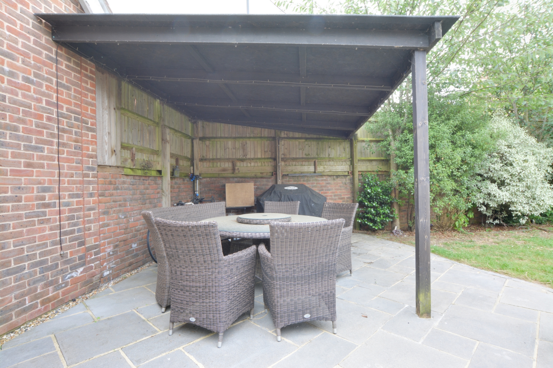 The rear garden is a real feature to this property which benefits from a patio to the rear of the property and to the rear of the garden which incorporates an undercover seating area. The generous patio area is great for entertaining and provides plentiful space for all your summer furniture. Access to the double garage is possible from the garden via a single door. Within the double garage there is an additional fridge freezer which again is ideal for those Summer Barbeques and family gatherings. The double garage also offers storage space in the loft area. The up and over door is accessed via the driveway.