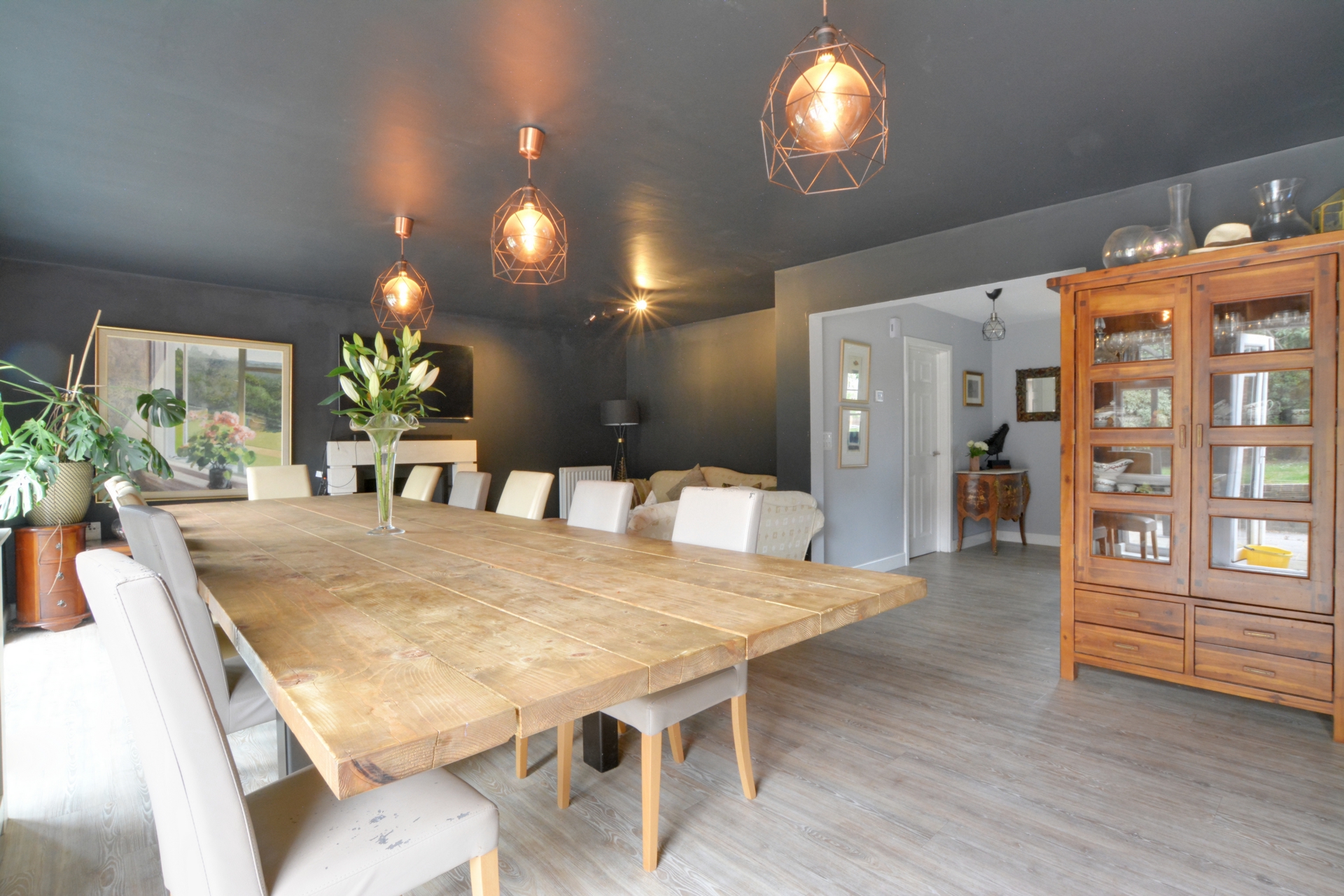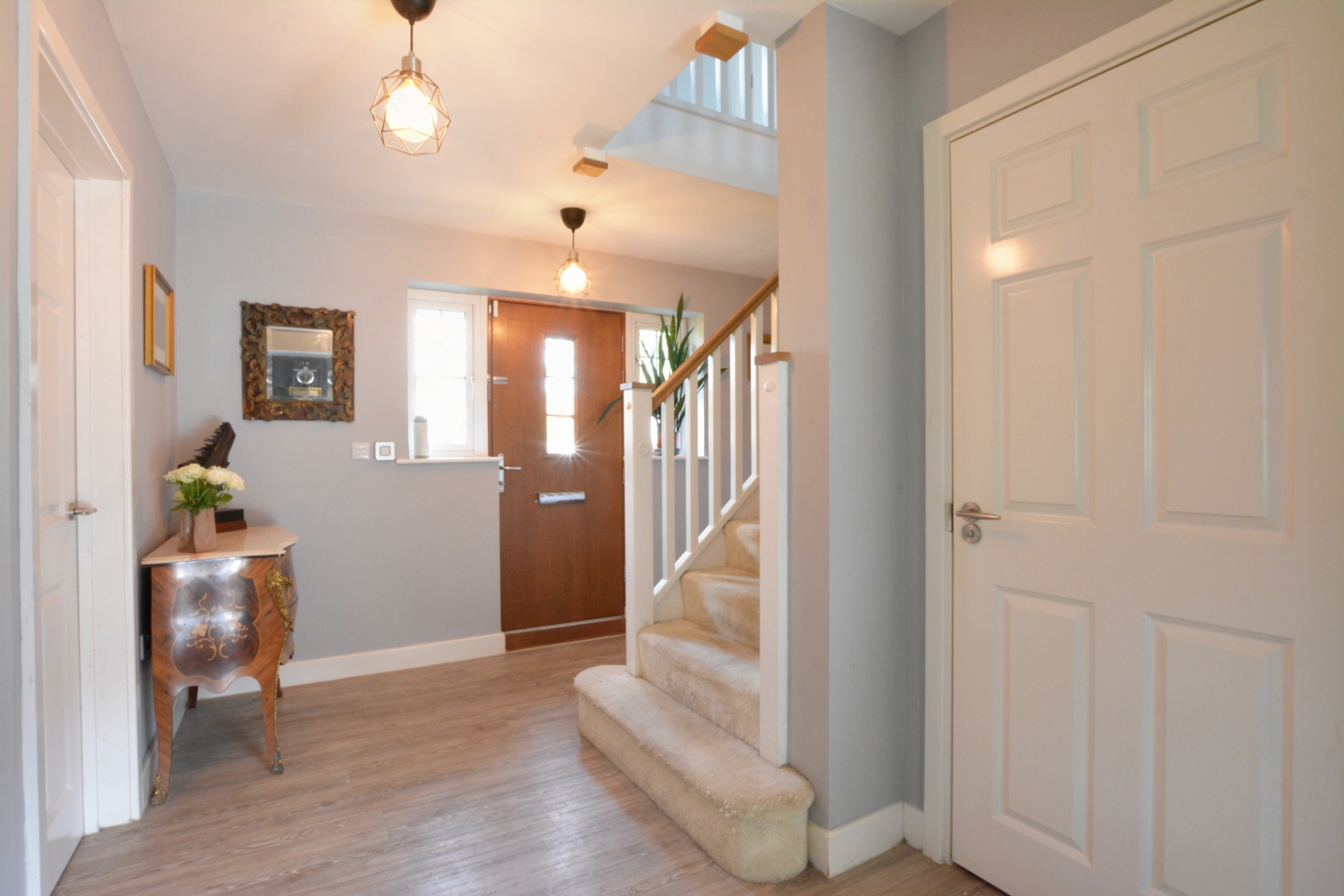 On entering the property, you are greeted by a generous hallway which provides access to the ground floor accommodation and a turning stair case that leads to the first floor. To your left is the dining room, which can be a multipurpose room and is currently used as gaming/cinema room. The other room located at the front of the property is the study, this is good sized room with plenty of room for a desk and other furniture. Moving down the hallway there is an accessible ground floor cloakroom with a low-level w/c and wash hand basin. Now we enter the properties main open plan living space. The room has been created to enable the whole family to come together, the individual areas are well proportioned, the living area can comfortably accommodate a range of large sofas and coffee tables, whilst the dining area can easily accommodate an 8–10-seater dining table. Two sets of double opening doors, allow in plenty of light and open the space up and out onto the patio area, making it a great space for entertaining. To one end of the room is the kitchen, this is open plan to the rest of the room, making every meal time a sociable event. The kitchen is fitted with a range of base and eye level units with generous work surface surround. There is a range of fitted appliances including, dishwasher, washing machine, electric hob, double oven and fridge freezer. Adjacent to the kitchen is the utility room, the area is fitted with a range of base and eye level units with worksurface space and inset sink. A single door to one end provides access to the driveway.