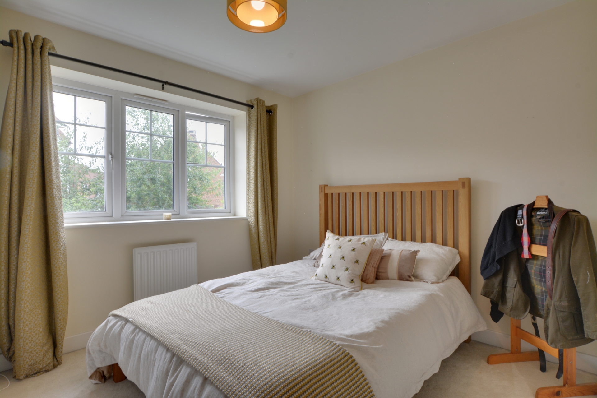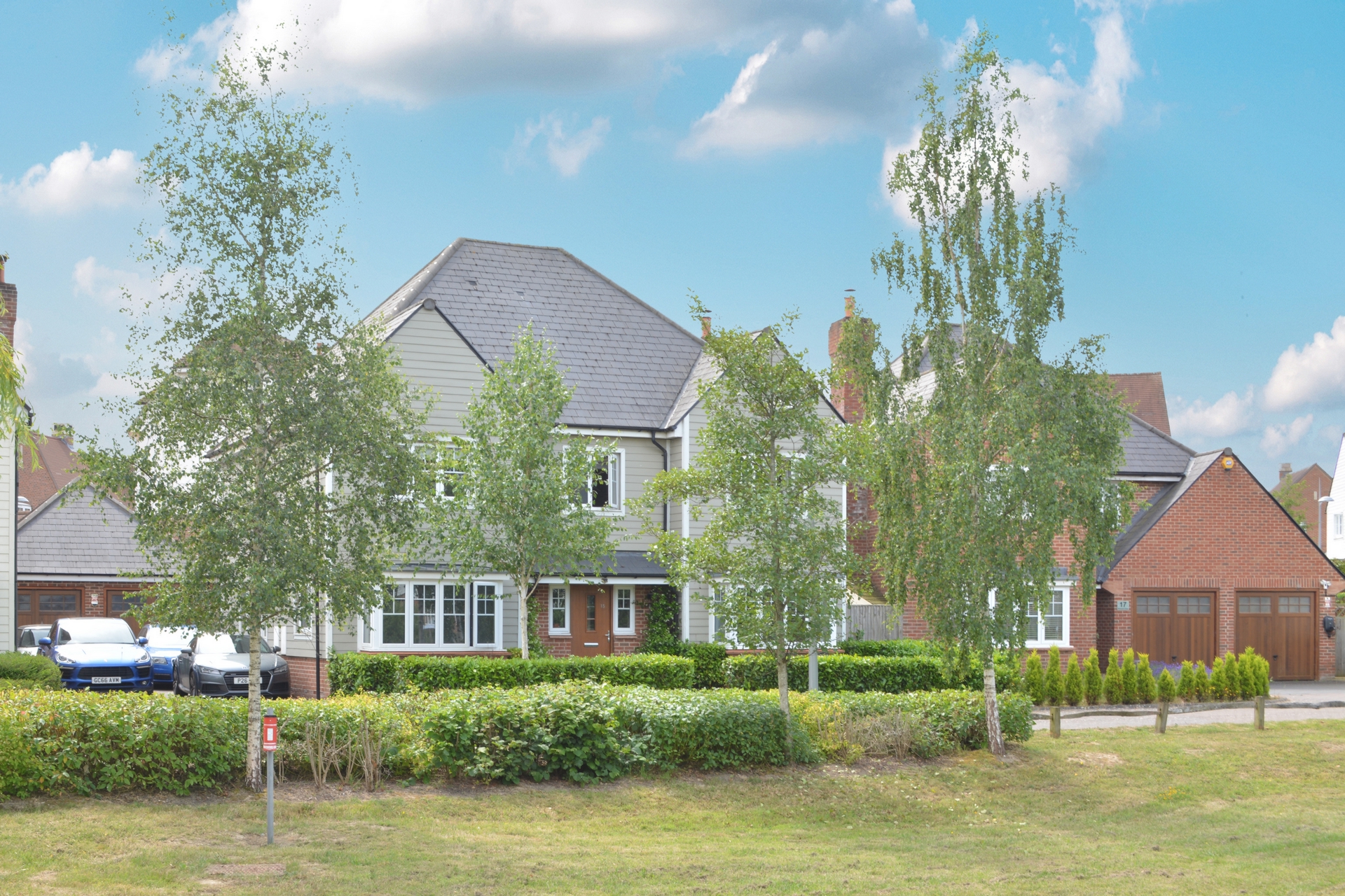 Moving upstairs you are greeted by a generous landing which provides access to all bedrooms, bathroom and loft space. The super king-size master bedroom is located to the rear of the property allowing you to enjoy views of the garden. The room is fitted with a quadruple wardrobe with sliding doors, whilst still being able to accommodate a super king size bed. A Juliette style balcony also enhances your enjoyment of the views over the garden. The en-suite incorporates a double shower cubicle, wash hand basin and low-level w/c all set against stylish tiling. Bedroom two is a double room located at the front of the property which takes in views out over the green and pond. The room can comfortably hold a king size bed with free standing furniture and is fitted with double wardrobes. Bedroom three is a double room and again takes in view over the green and pond. It too can comfortably hold a king size bed and is fitted with a double wardrobe. Bedroom four, is again a double bedroom with space for furniture and views over the rear garden. Bedroom five which is currently set up as a walk-in wardrobe is the smallest of the rooms and is a generous single room. The family bathroom is generous size, with double shower cubicle, bath with hand held shower attachment, wash hand basin and low-level w/c, again it’s all set against stylish tiling.