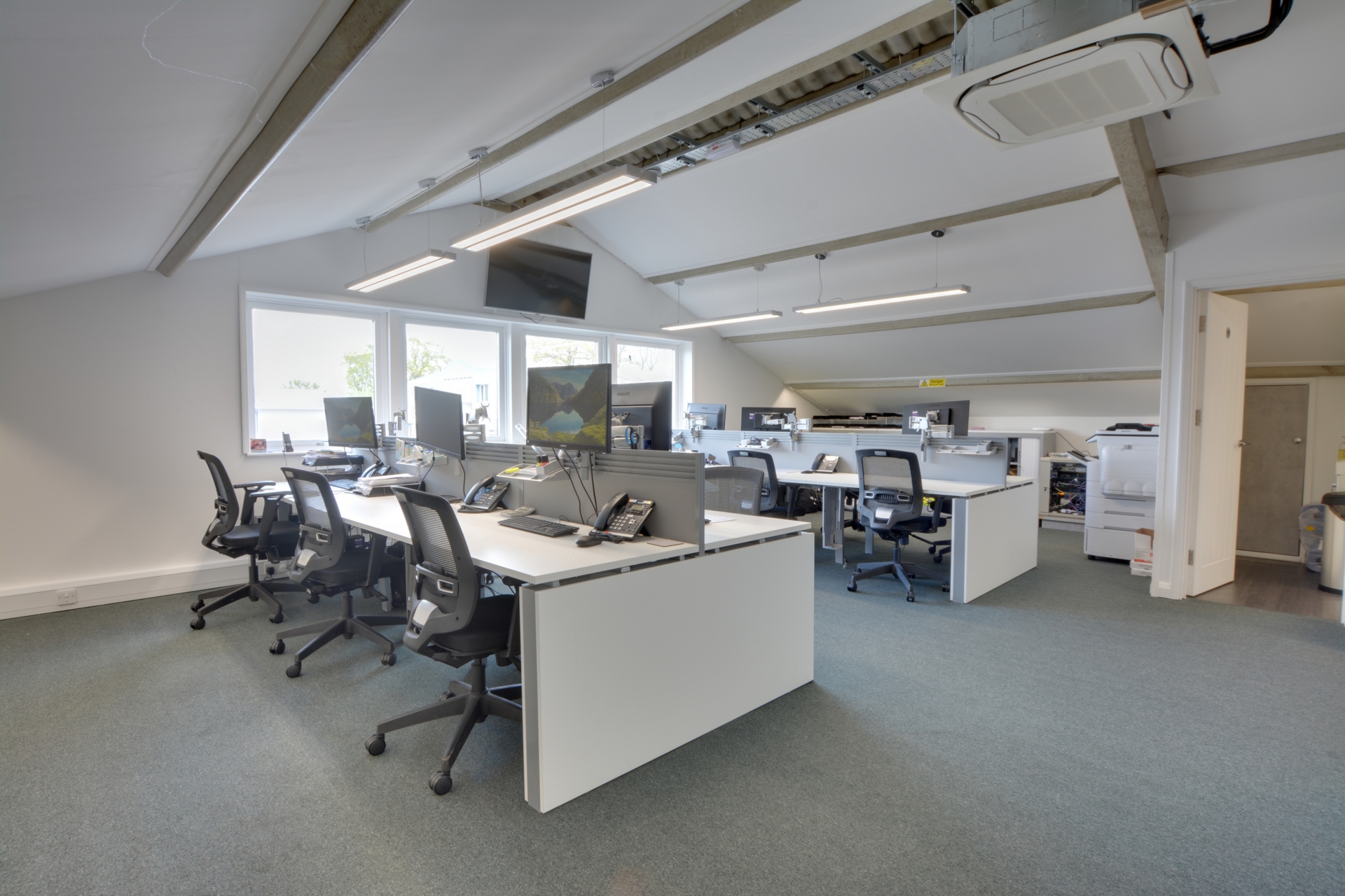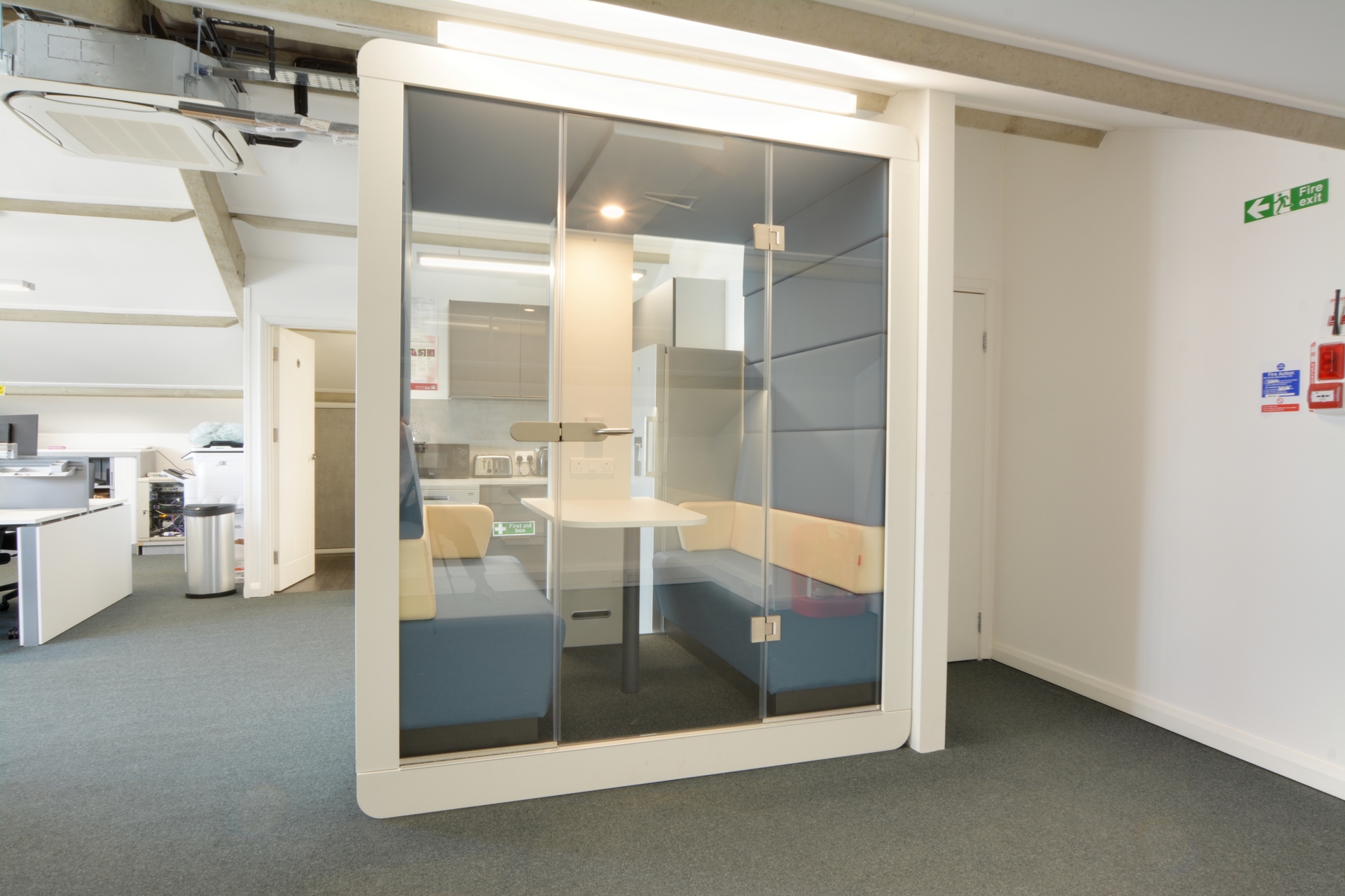 TO LET 820 Sq/Ft Office Space available immediately. Located close to Crawley Town Centre this office space is equipped with office furniture. There is a newly fitted kitchen, air conditioning, built in storage, two toilets, an individual sound proof meeting Pod and two parking spaces.
